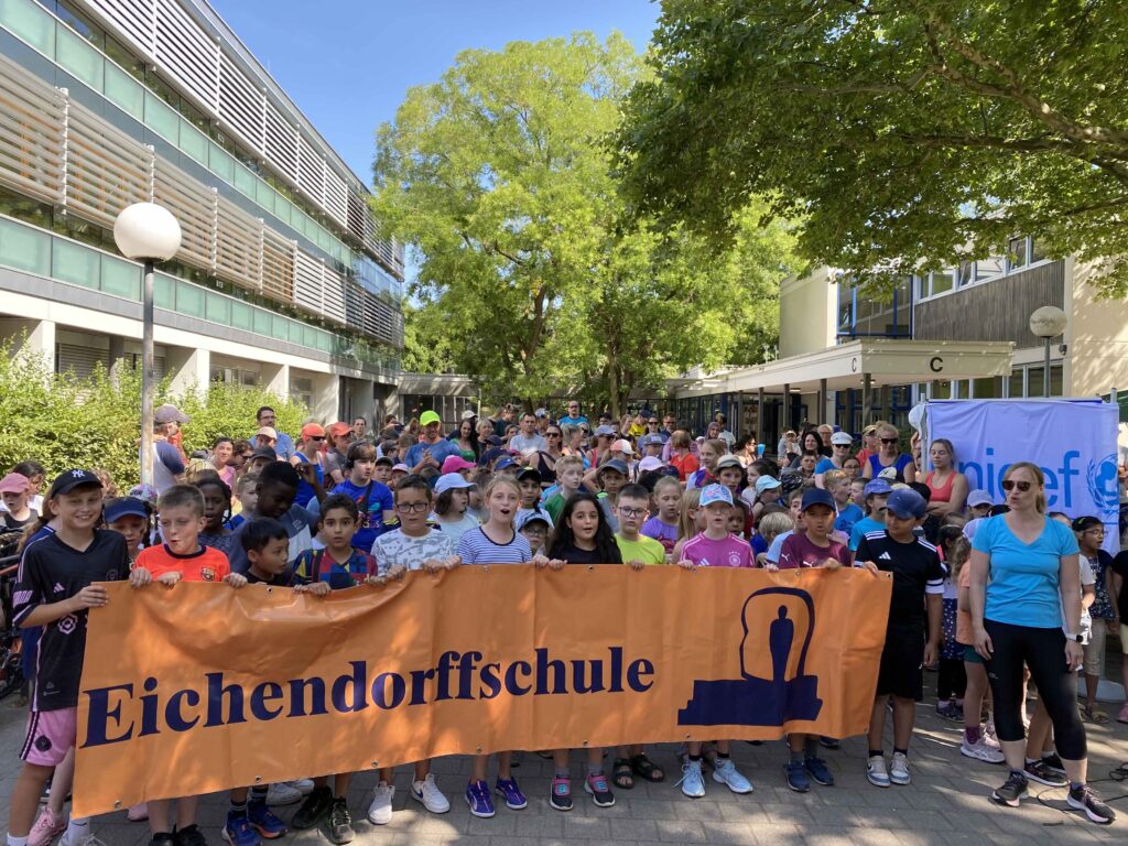 Am 4. Juli 2025 fand bereits zum 7. Mal der UNICEF-Lauf an der Eichendorffschule statt. Bei strahlendem Sonnenschein und bestem Laufwetter fanden sich zahlreiche Schülerinnen und Schüler, viele Geschwisterkinder und Eltern, fast das gesamte Kollegium sowie neugierige Bürgerinnen und Bürger aus der Waldstadt an der rund einen Kilometer langen Rundstrecke ein, um eine Stunde lang aktiv mitzulaufen oder die Läuferinnen und Läufer anzufeuern und zu unterstützen.