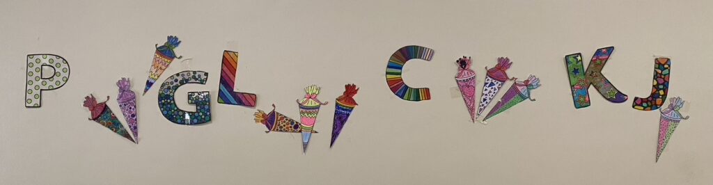 Während die Schulanfänger*innen im Anschluss an das Programm mit ihren neuen Klassenlehrerinnen ihre erste Schulstunde erleben durften, konnten die Eltern, Geschwister, Großeltern und alle Gäste sich an einem leckeren Kuchenbuffet stärken, das von den Familien der Zweitklässler gebacken und spendiert worden war. Der Förderverein überraschte unsere neuen Schülerinnen und Schüler mit einer kleinen zusätzlichen Schultüte.