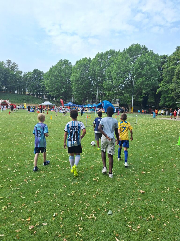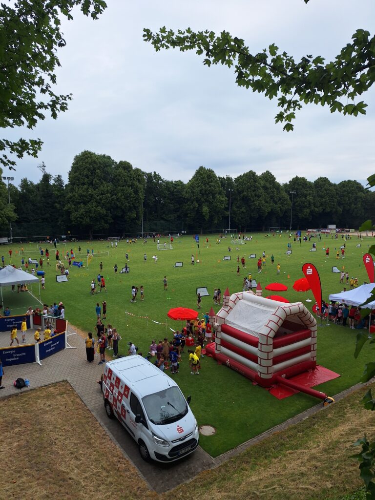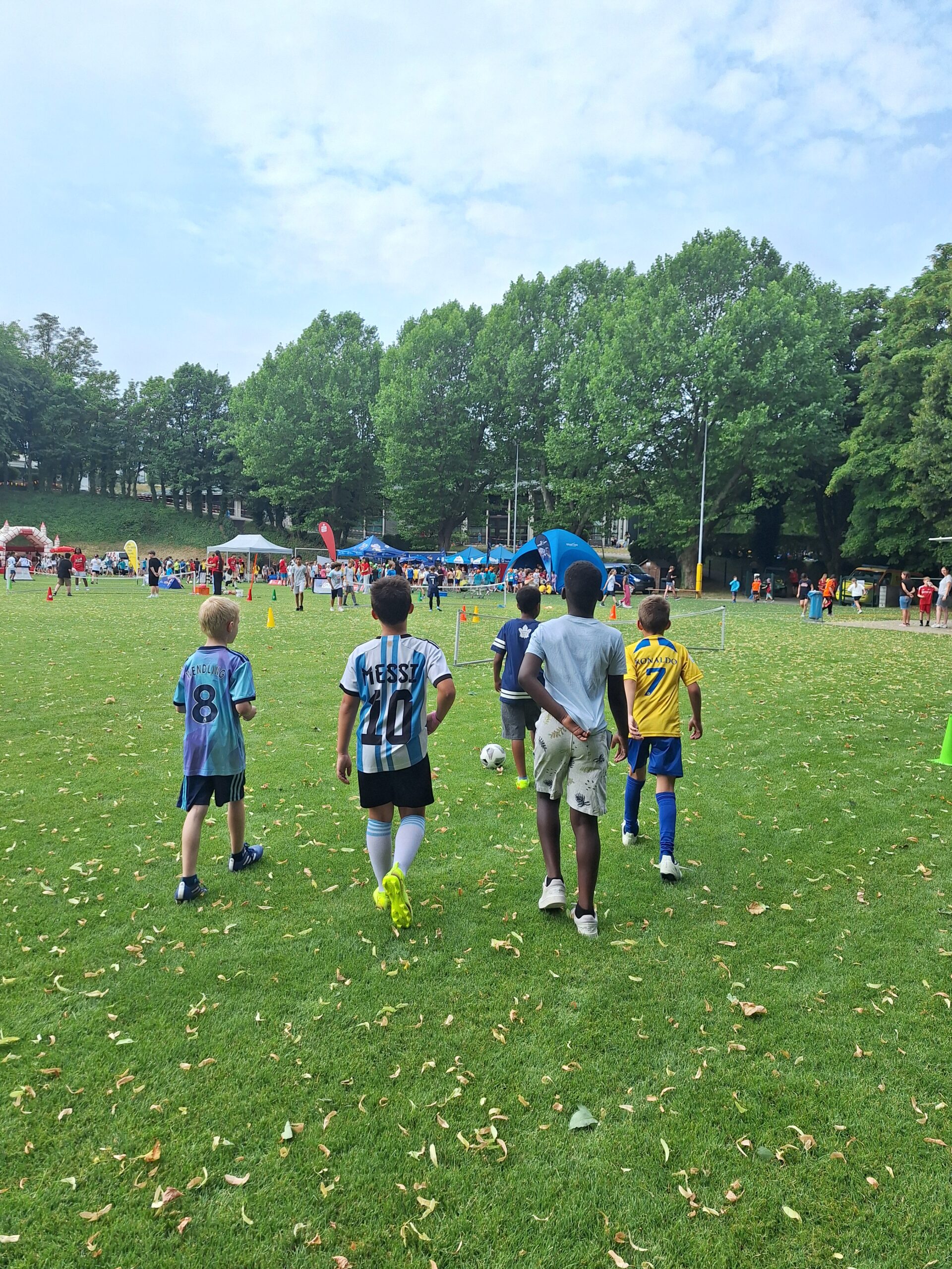 Am Donnerstag, den 3. Juli, stand für die Klassen 3a und 3b der Eichendorffschule ein ganz besonderer Ausflug auf dem Programm: Gemeinsam machten sich die Schülerinnen und Schüler auf den Weg zur Sportschule Schöneck – und das zu Fuß! Schon der Aufstieg auf den Turmberg war Teil des sportlichen Tages und brachte die Kinder in Bewegung. Oben angekommen erwartete sie ein abwechslungsreiches Fußballprogramm, das vom Badischen Fußballverband anlässlich des Starts der Frauen-Fußball-Europameisterschaft in der Schweiz organisiert wurde. Auf verschiedenen Stationen konnten die Kinder ihr Können mit dem Ball unter Beweis stellen, spielerisch neue Techniken ausprobieren und vor allem: jede Menge Spaß haben! Auch viele andere 3. und 4. Klassen aus der Region nahmen an diesem sportlichen Event teil. So entstand eine tolle Atmosphäre, in der die Kinder nicht nur Fußball spielen, sondern auch neue Kontakte knüpfen konnten. Bei angenehmen Temperaturen tobten sich alle begeistert aus und genossen die Bewegung an der frischen Luft. Es war ein gelungener, aktiver Tag, der allen noch lange in Erinnerung bleiben wird.