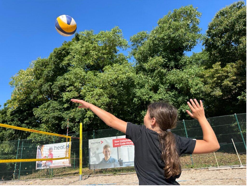 Unter der fachkundigen Anleitung von Volleyballtrainer Diego übten die Kinder fleißig die Grundtechniken des Spiels: Pritschen, Baggern und Aufschläge standen auf dem Programm.